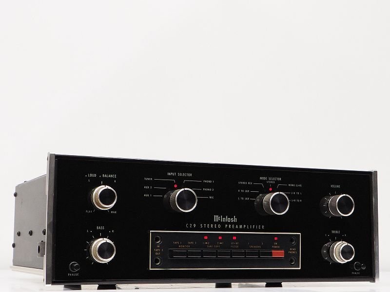 ●商品説明 ■メーカー : McIntosh(マッキントッシュ) ■ジャンル:プリアンプ ■型番 : C29 ■外径寸法 : W375×H122×D330mm ■重量 : 8.6kg McIntosh(マッキントッシュ)は、アメリカを代表するハイエンドオーディオブランドとして、伝統的なデザインと高い信頼性、音楽性豊かなサウンドで世界中のオーディオファンから支持されています。長年にわたり一貫した品質を保ち続けている点も大きな魅力です。 C29は、マッキントッシュらしい厚みのある中低域と、滑らかで聴き疲れしにくい音質が特徴のプリアンプです。フォノ入力を含む豊富な入出力を備え、ヴィンテージ機でありながら実用性も高く、現代のシステムにも自然に溶け込みます。 同等クラスでは、McIntosh C32、Accuphase C-200、LUXMAN C-06 など……