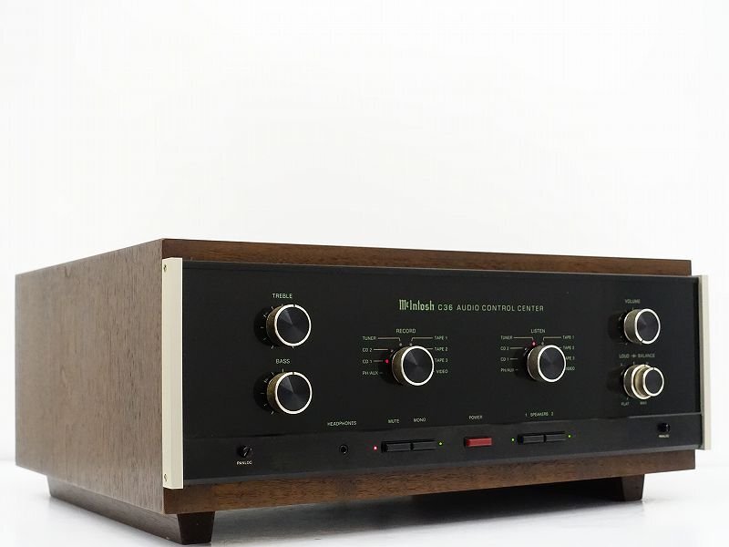 ●商品説明 ■メーカー : McIntosh(マッキントッシュ) ■型番 : C36 ■外径寸法 : W445×H138×D330mm(ウッドケース除く) ■重量 : 8.2kg McIntosh C36は、同社伝統のガラスフロントとブルーアイズメーターを備えた高品位プリアンプで、フォノイコライザーを内蔵し、アナログ再生を重視するユーザーから高い評価を受けているモデルです。艶やかで力強い中低域と安定感のある音像表現は、マッキントッシュならではの魅力といえます。ウッドケースおよび元箱付きの正規品は中古市場でも特に需要が高く、今回も高額査定につながりました。 競合・同等クラスの製品としては、Accuphase C-260/C-280、Mark Levinson No.26、LUXMAN C-06αなどが挙げられ、いずれも高音質設計と長期使用に耐える完成度の高さで……