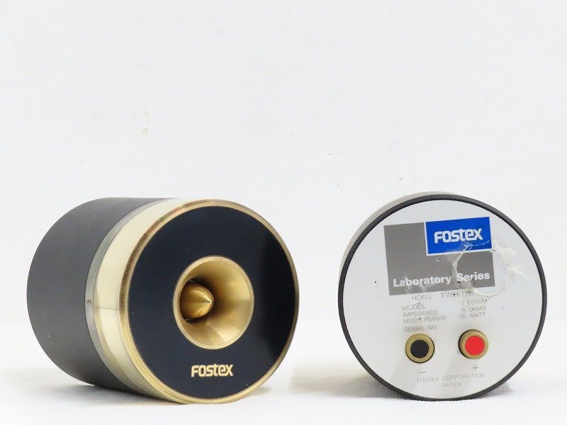 ●商品説明 ■メーカー : FOSTEX ■ジャンル:ツイーター(ホーン型) ■型番 : T500A ■インピーダンス : 8Ω FOSTEXは、長年にわたりスピーカーユニットやプロ向け音響機器を手がけてきた日本の音響メーカーで、確かな技術力と信頼性の高さで知られています。特にホーン型ツイーターは、明瞭度の高い音像と優れたレスポンスで評価が高く、現在でも多くのオーディオファンに支持されています。 T500Aは、アルニコマグネットを採用したホーン型ツイーターで、伸びやかで抜けの良い高域再生が特長です。高能率設計のため、大型スピーカーシステムやヴィンテージユニットとの相性も良く、自作派・マルチアンプ派からも高い人気を誇ります。 同クラスでは、JBL 2405(スロットツイーター)や ALTEC 3000 などが比較対象として挙げられ、高域表現にこだわるユー……
